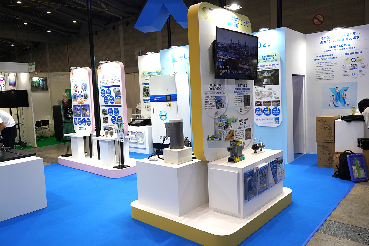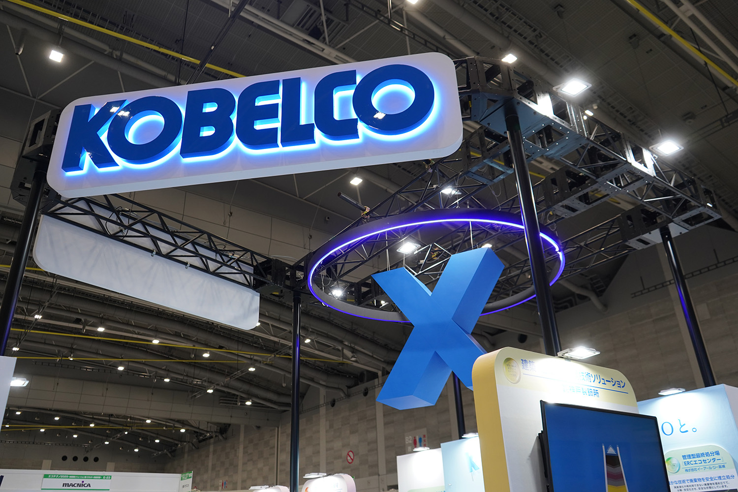 ブースの上部に大きなXを象徴的に配し、全体をコーポレートカラーのブルーとホワイトでまとめ、